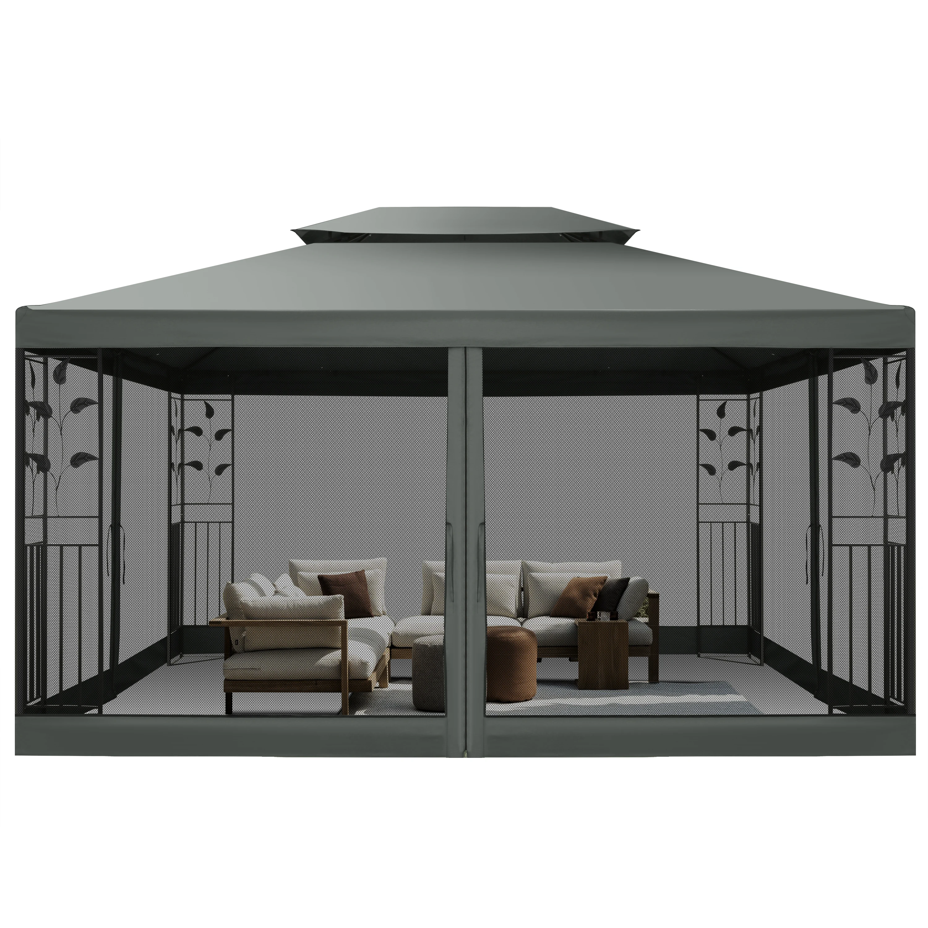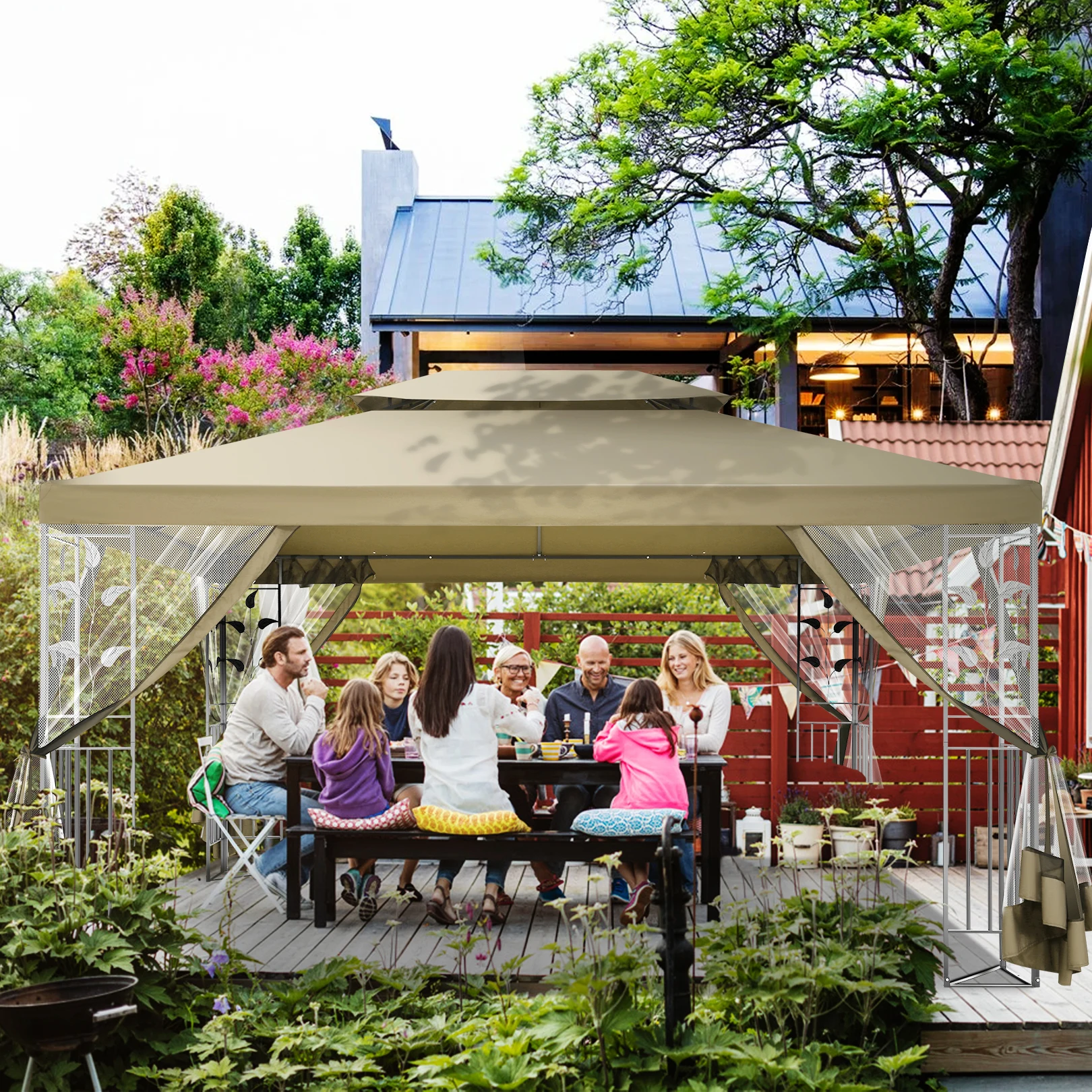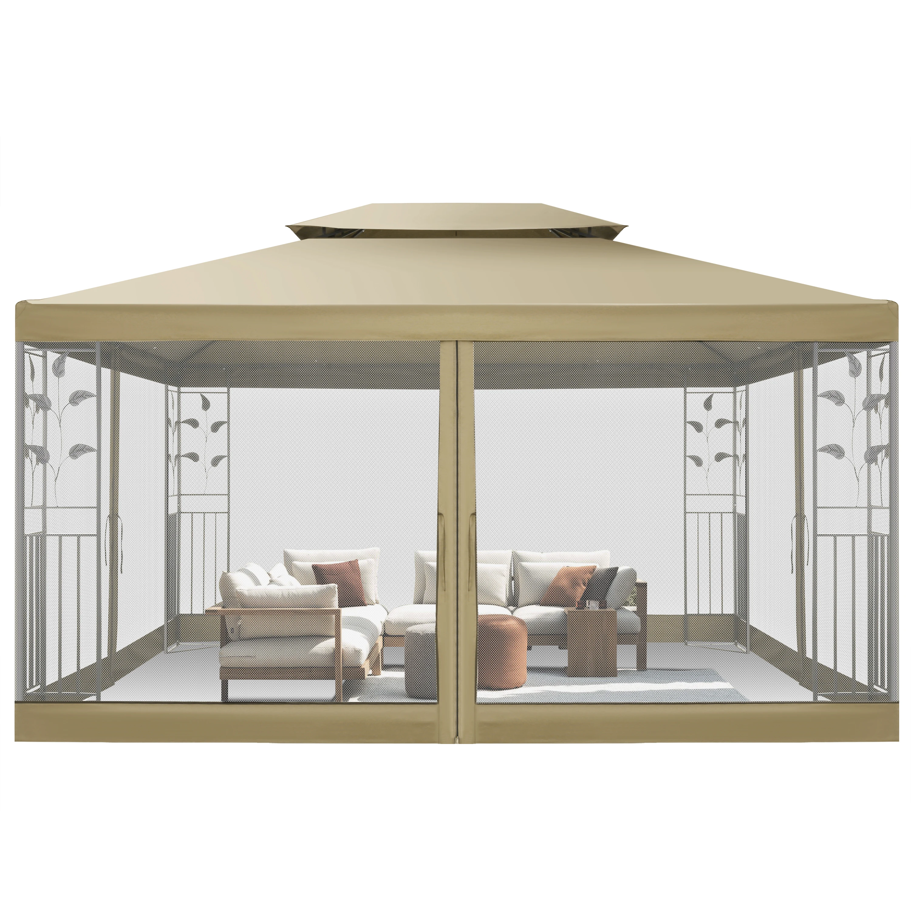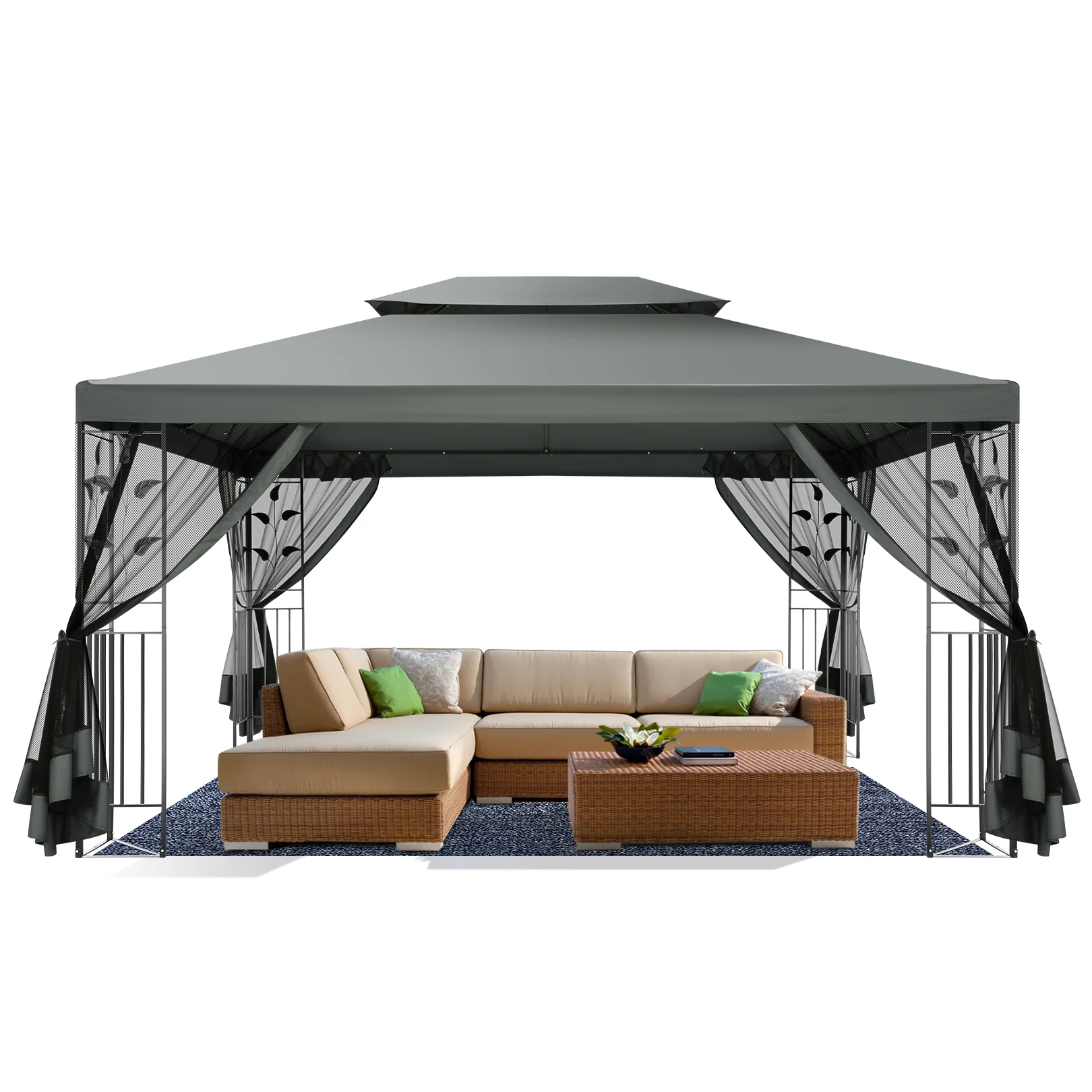 10x13 Outdoor Gazebo on Clearance with Mosquito Netting and Ventilated Double Flat Roof,All Weather for Patio,Backyard,Garden