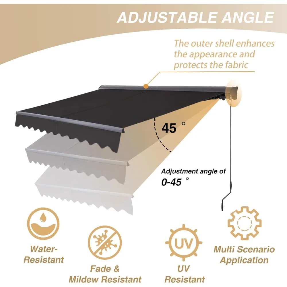 10'x8' retractable awning with protective shell - heavy-duty steel frame, uv block fabric for patio, window (black [protective c