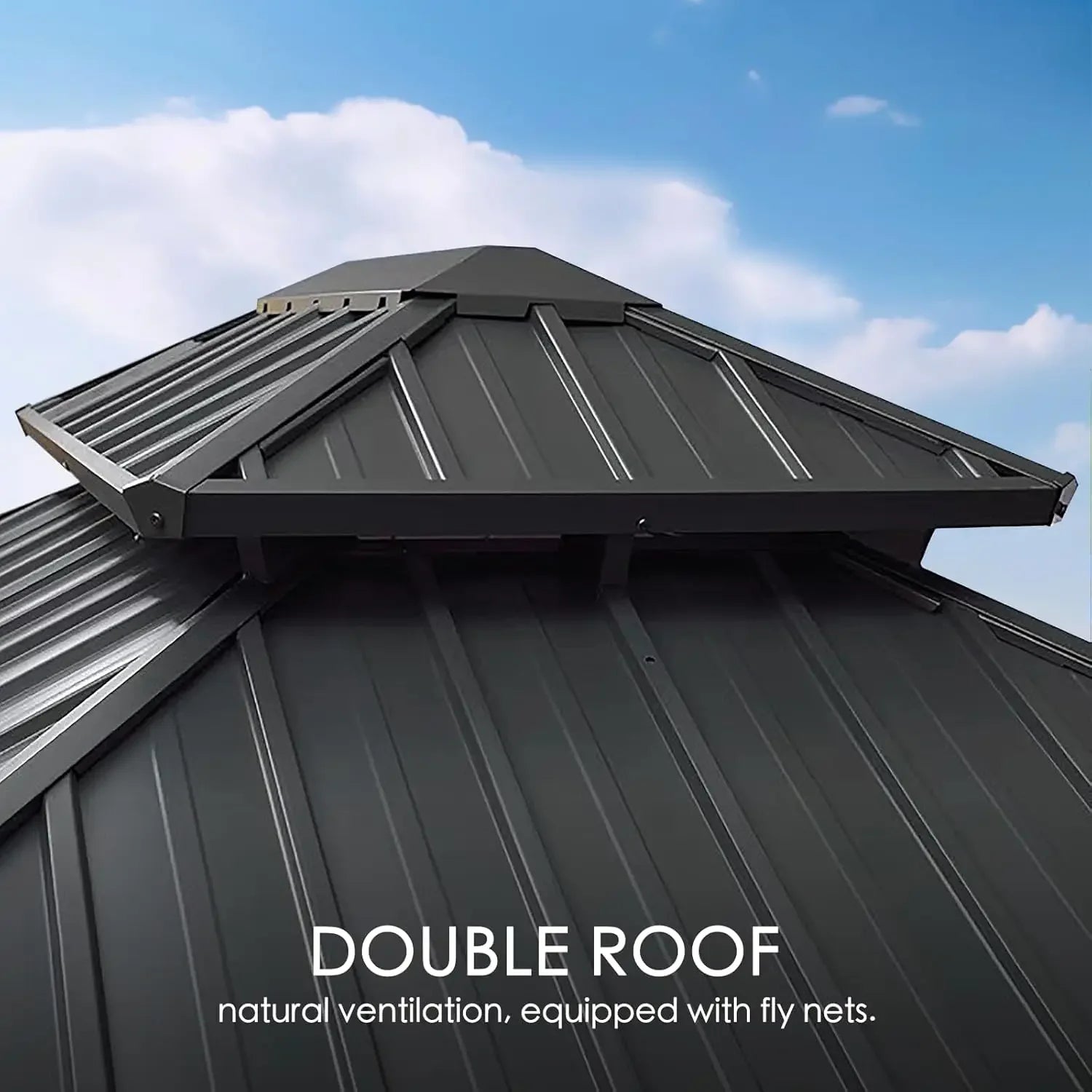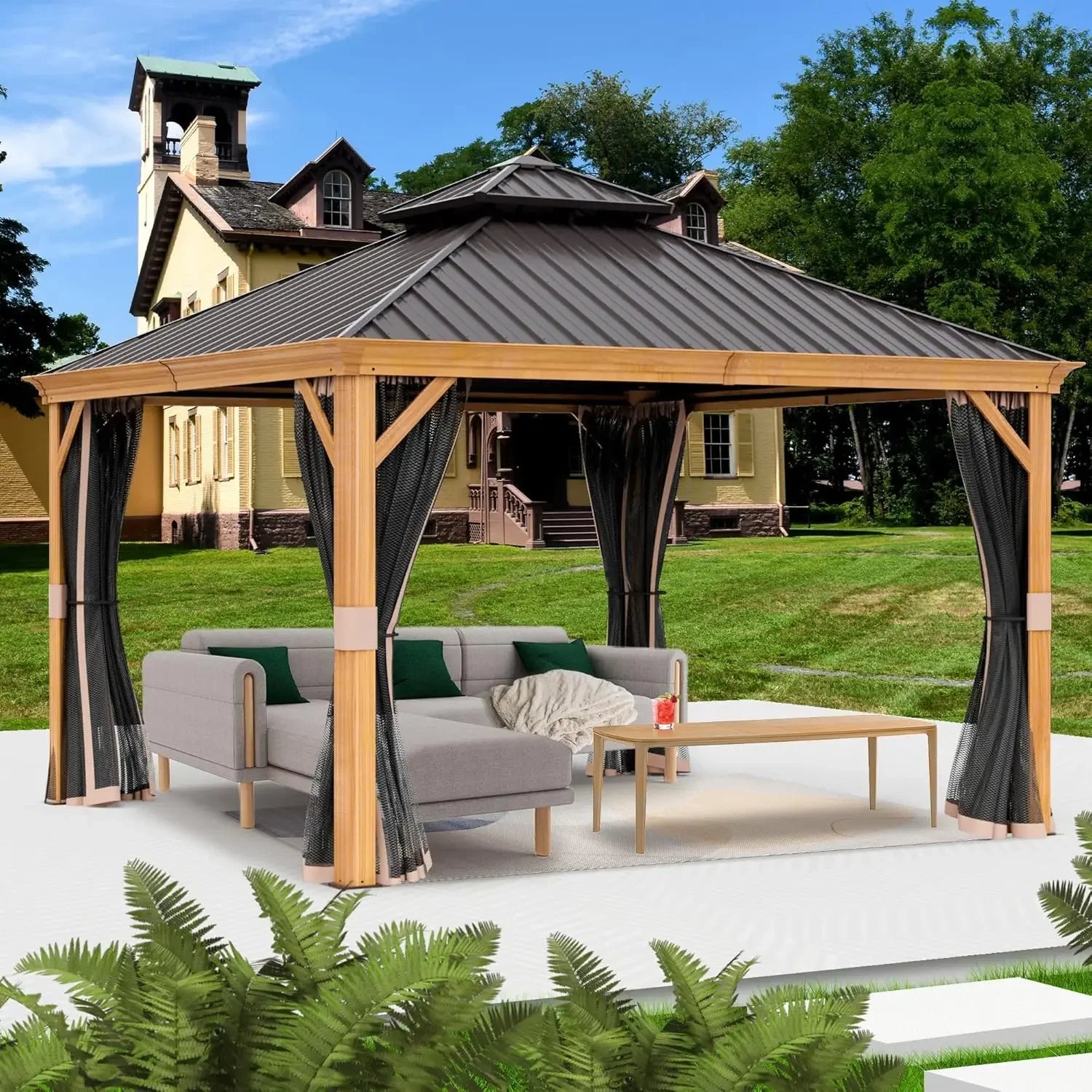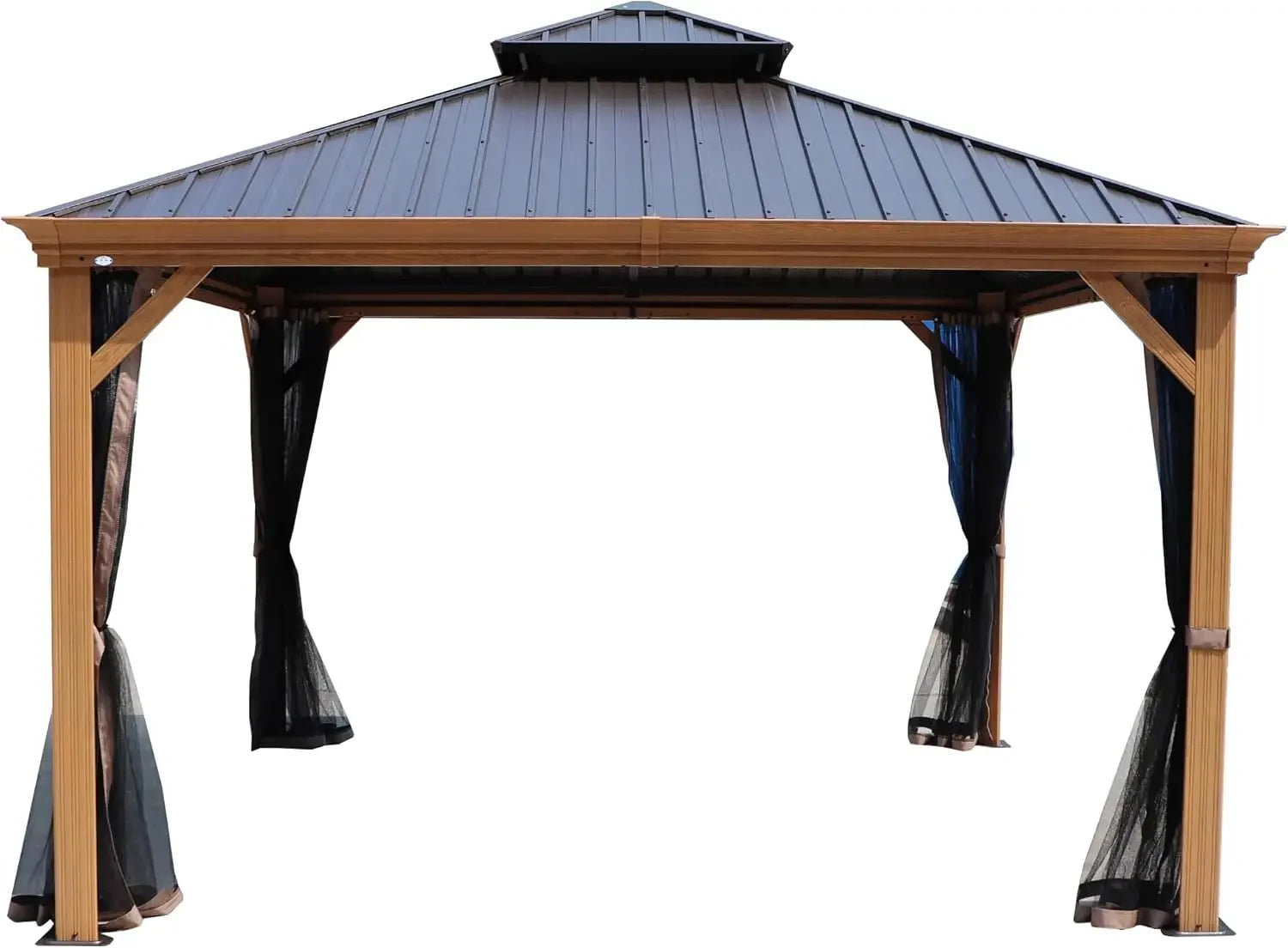 12’x12’ Hardtop Gazebo, Outdoor Permanent Metal Pavilion with Netting for Patio, Deck and Lawn (12ft x 12ft)