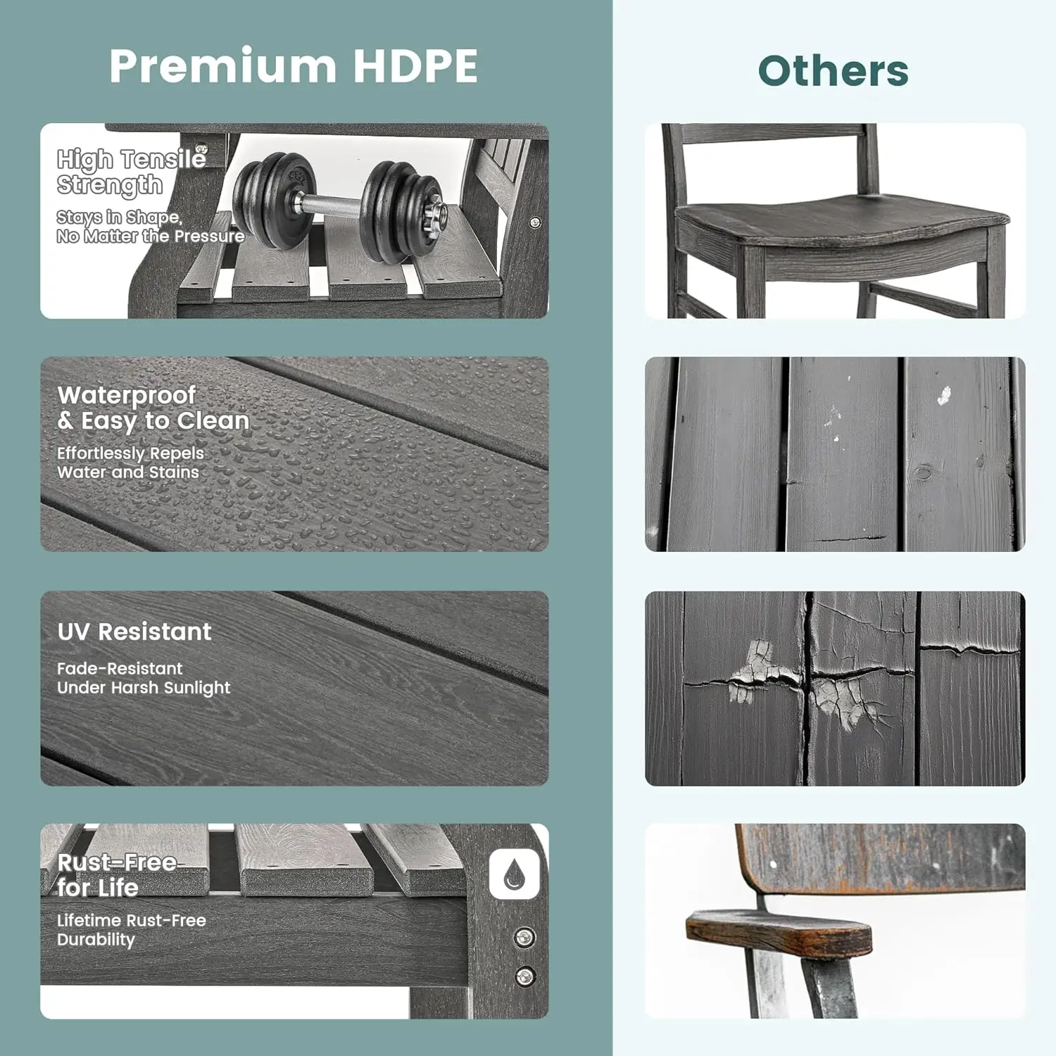 - Durable HDPE Material: Constructed with premium HDPE, this outdoor dining set is recyclable, weather-resistant, and built for long-lasting outdoor use, making it an eco-friendly choice