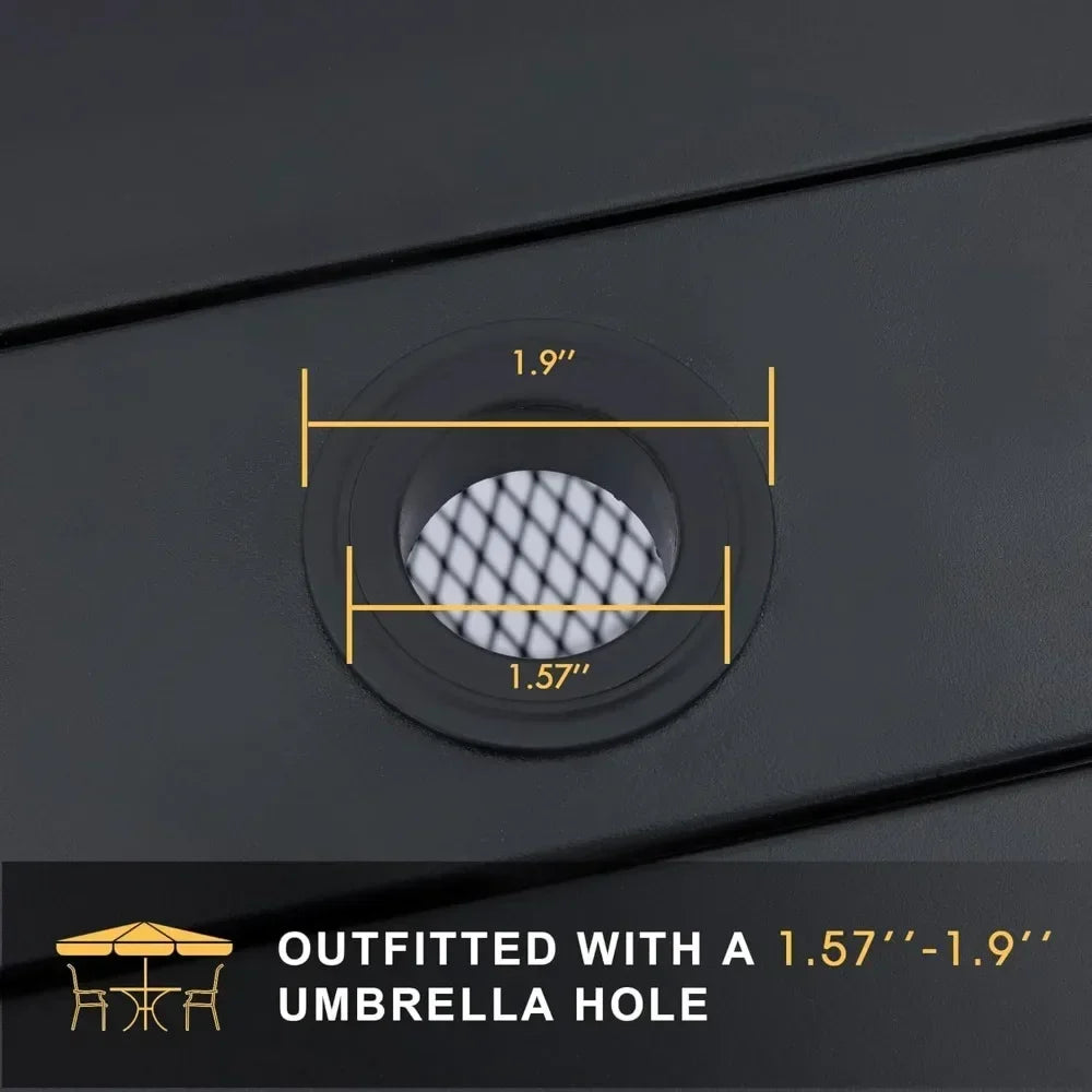 【Square Patio Table】Patio table set features a powder-coated frame, the bent leg design serves better stability and greater aesthetics, outfitted with an adjustable umbrella hole (1.9", hole cover included), opening to secure an umbrella to protect your food and guests from the bright sun