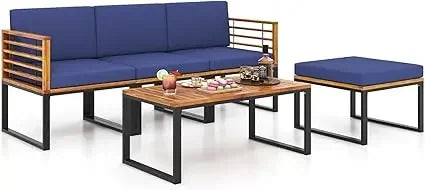 - High-Strength Structure: The tabletop and sitting area are both made of high-grade acacia wood. And all the 5 pieces are supported by heavy-duty metal pipes, which make them built-to-last and super sturdy.