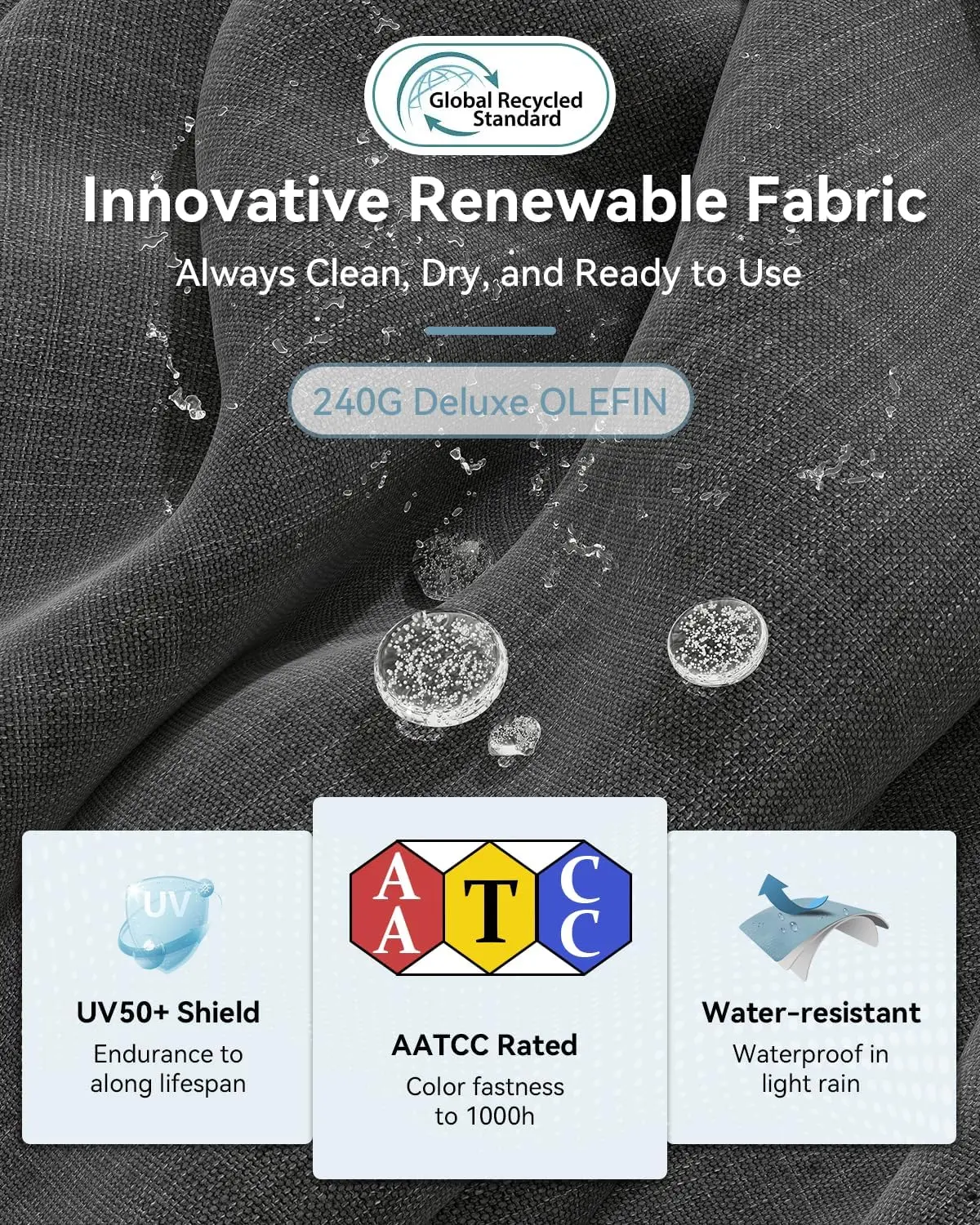 - 【Luxury Redefined 5" Thick Olefin Cushions Outperform Competitors】Experience cloud-like comfort with industry-leading 5" high-density seat cushions and plush backrests – 20% thicker than standard outdoor furniture. Our fade-resistant Olefin fabric withstands sun exposure, moisture, and stains while maintaining its softness season after season.