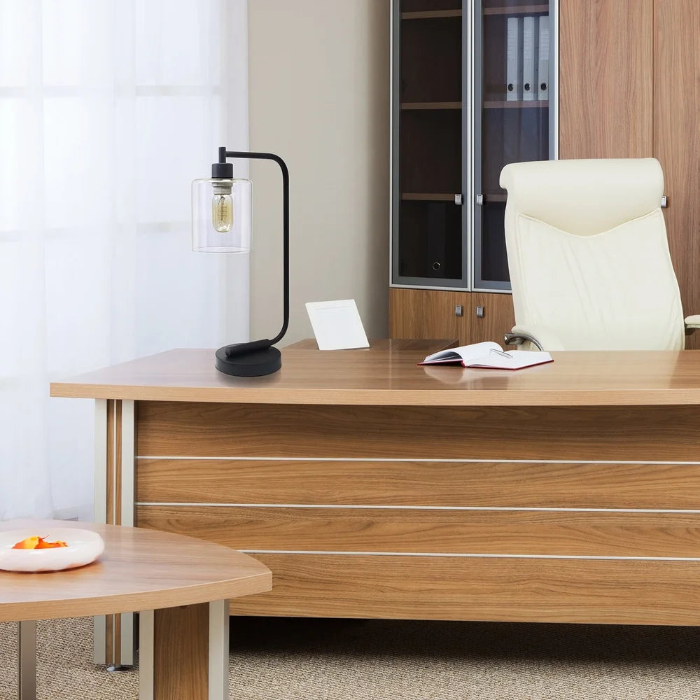 Industrial Iron Desk Lamp 16 Inch Black Clear Shade Edison Bulb Compatible ON OFF Switch Modern Home Decor Lighting