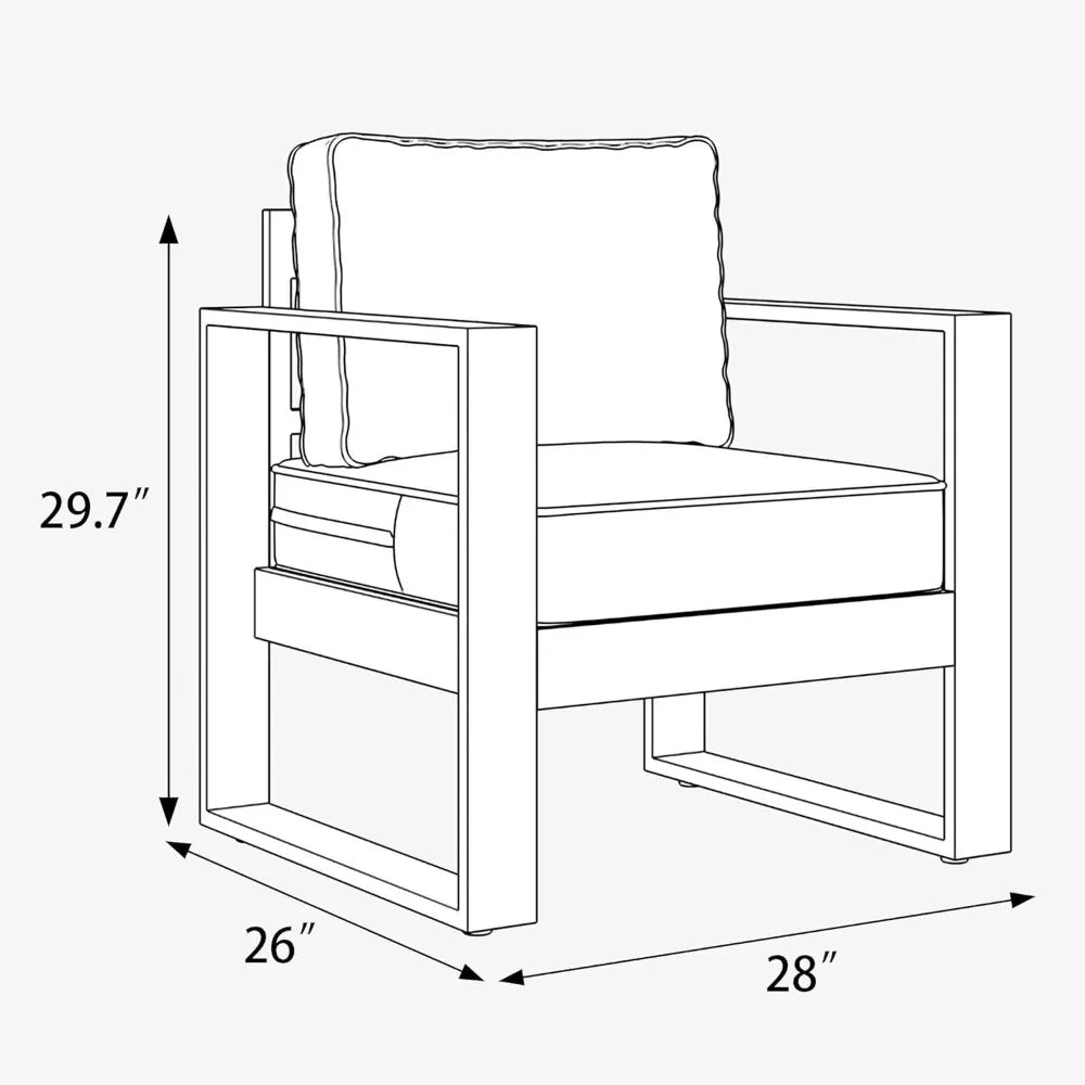 Outdoor Patio Aluminum Chair, Metal Modern Armchair Set of 2 with Washable Thick Cushions
