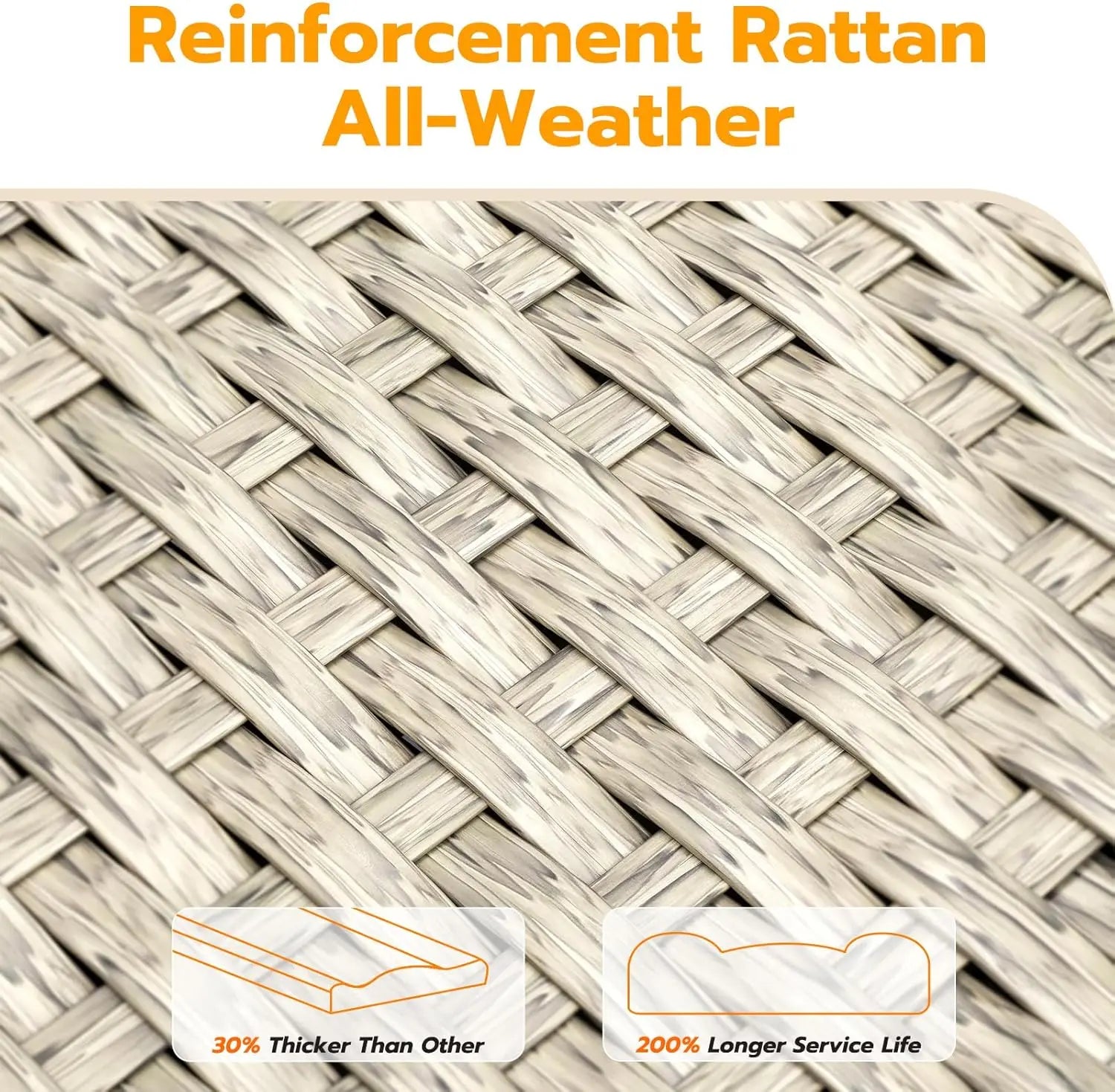- Durable Material: Outdoor patio furniture sets are made of PE rattan wicker with strong steel frame which is resistant to rust and corrosion. PE resin wicker rattan is UV resistant and waterproof
