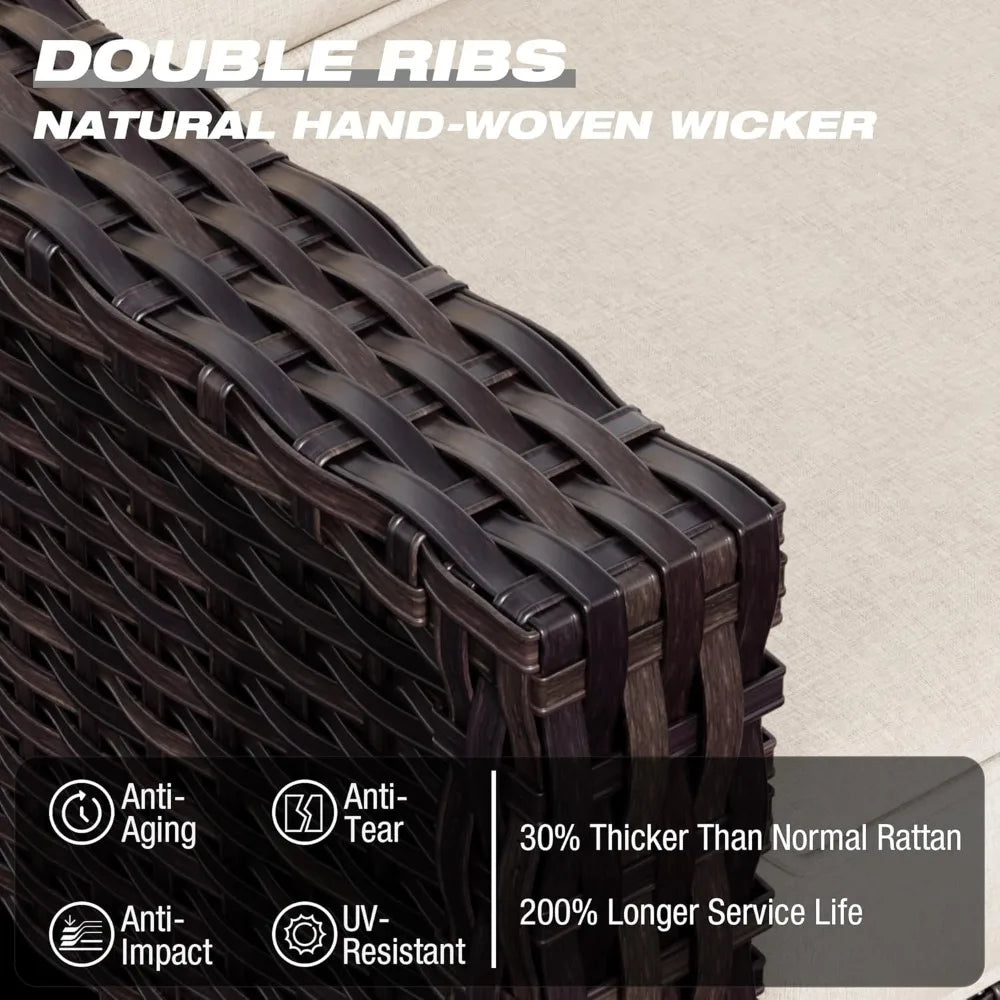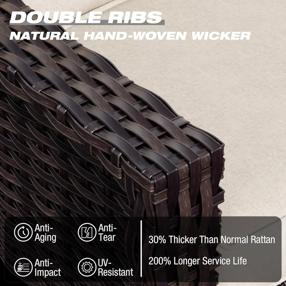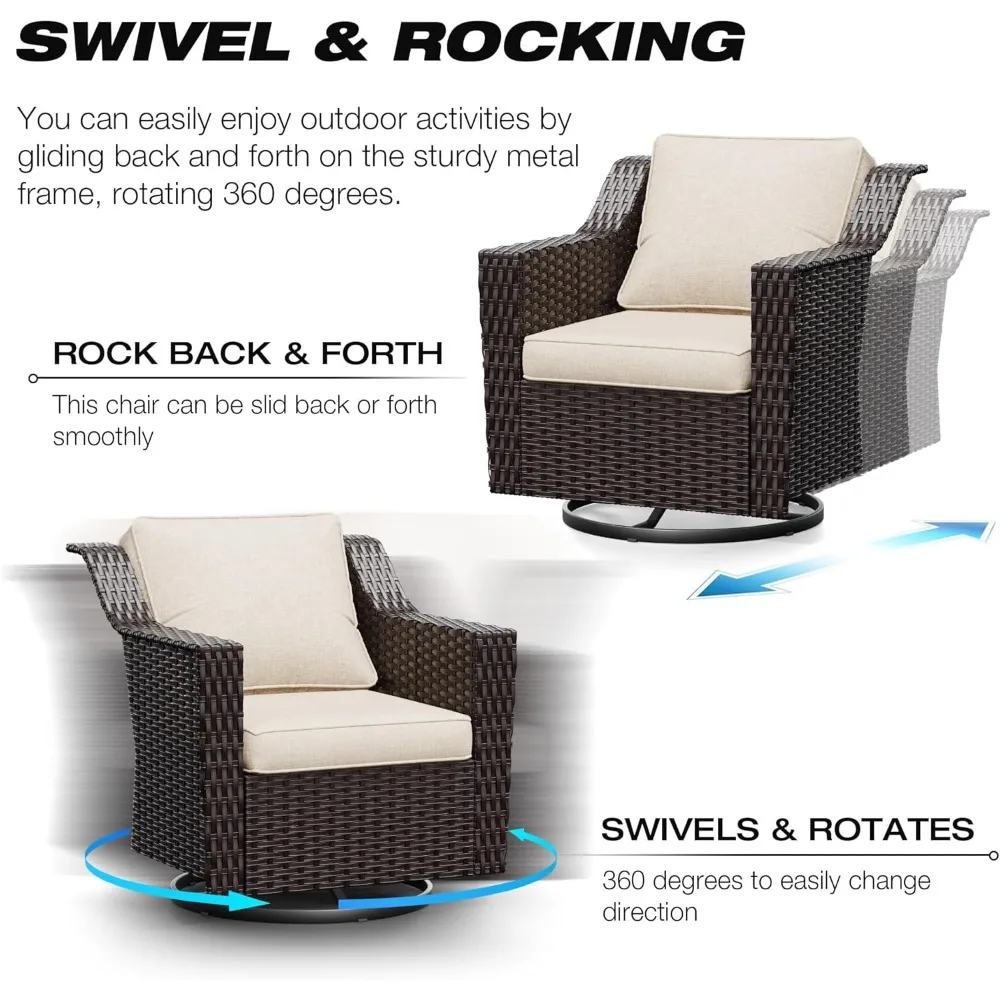 Wicker Patio Furniture Sets, 5 Pieces Upgraded Large Size Outdoor Furniture with Swivel Rocking Patio Chairs